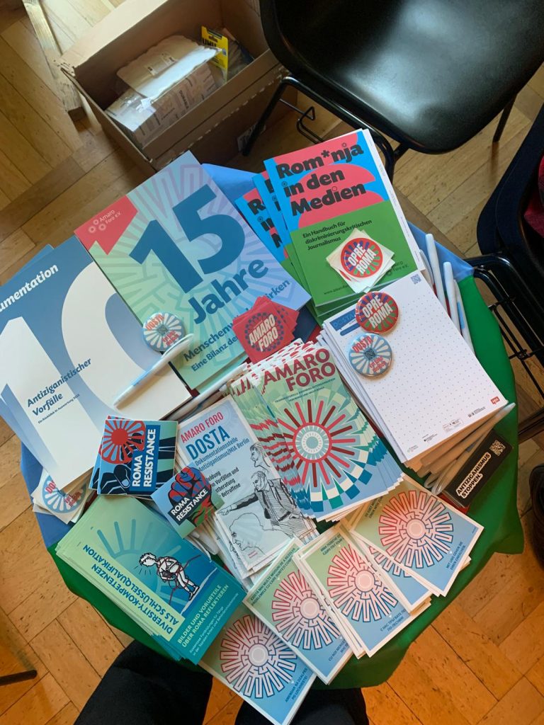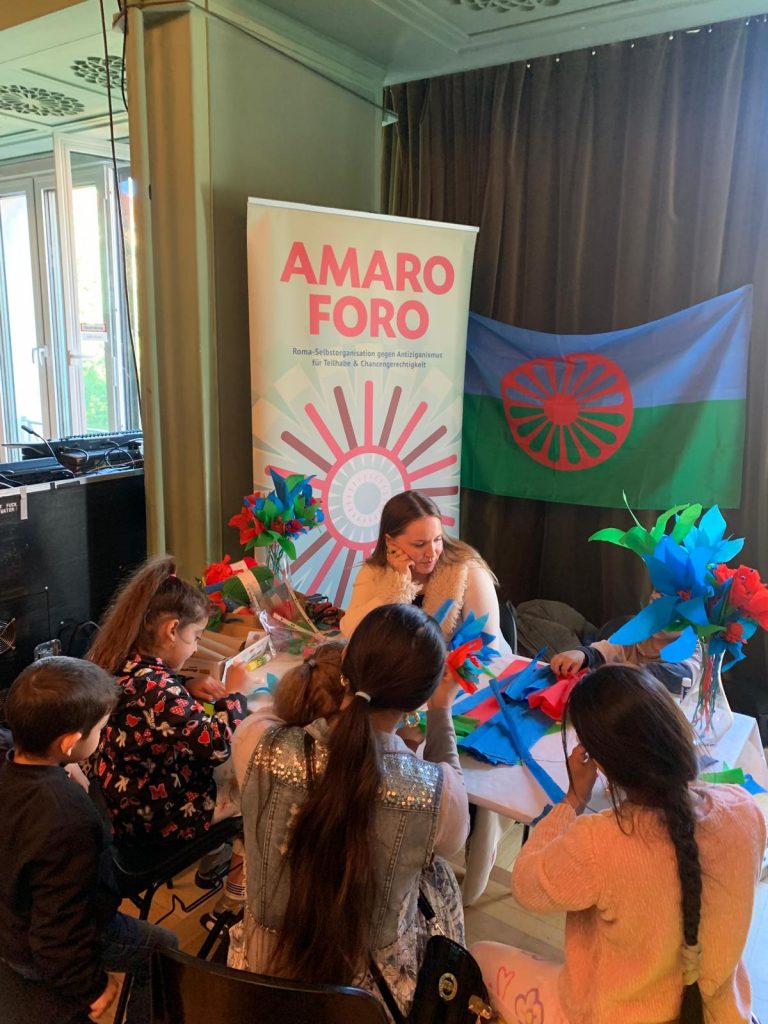 Stattdessen haben wir an einer Veranstaltung im Grünen Salon teilgenommen. Dort haben wir den Weltromatag gemeinsam als Community-Event gefeiert – mit dem Fokus auf Sichtbarkeit, Stolz und Empowerment. Zusammen mit verschiedenen Selbstorganisationen stand der Raum für Austausch, gegenseitige Stärkung und das gemeinsame Setzen von Zeichen im Mittelpunkt.