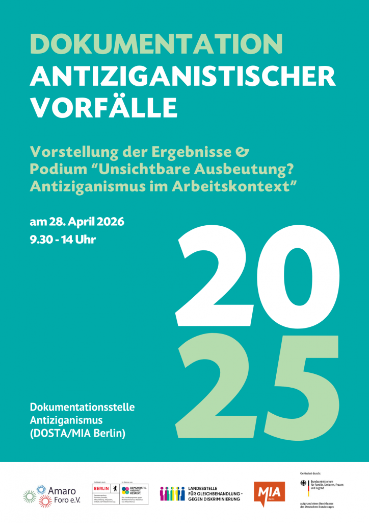 Die Dokumentationsstelle Antiziganismus (DOSTA/MIA Berlin) veröffentlicht heute im Rahmen einer Pressekonferenz ihren Jahresbericht für 2025. Insgesamt wurden im vergangenen Jahr 293 Vorfälle antiziganistischer Diskriminierung in Berlin erfasst – die höchste je dokumentierte Fallzahl. Damit wird erneut das Niveau der bereits hohen Werte der Vorjahre übertroffen.